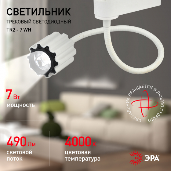 Эра Трековый Светильник ЭРА TR2 - 7 WH 7Вт белый гибкий COB (40/320)