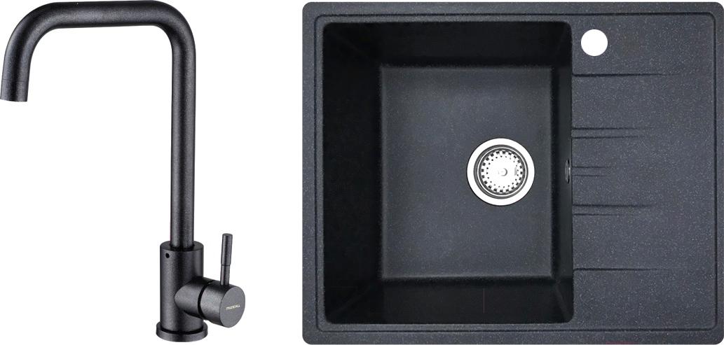 Мойка кухонная БелЭворс Mila L + смеситель W4998-4-25 (оникс черный)