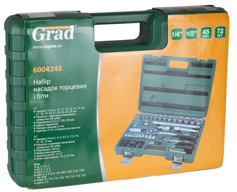 Набір насадок торцевих і біти Grad 1/4 "1/2" 72 шт (6004245)