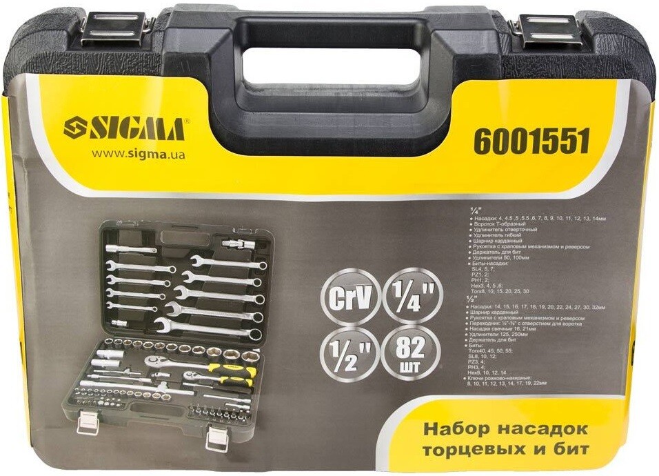 Набір насадок торцевих і біти Sigma 1/4 "1/2" 82 шт CrV (6001551)