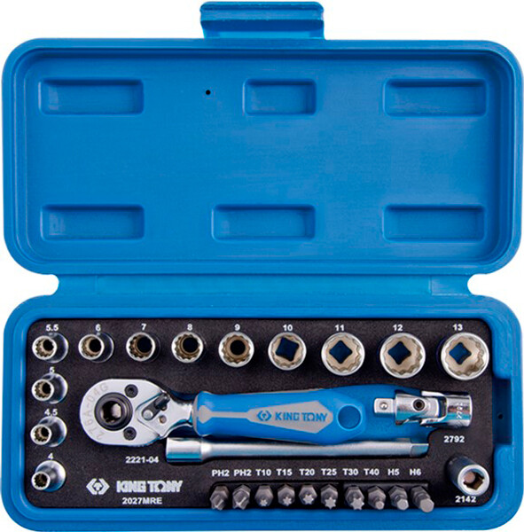 Набір головок KING TONY 1/4 "27 одиниць, 12-ти гранні, 4-14 мм...