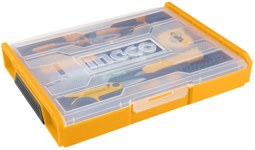 весь набір компактно укладений у пластиковий бокс, у якому зручно зберігати та переносити інструменти.