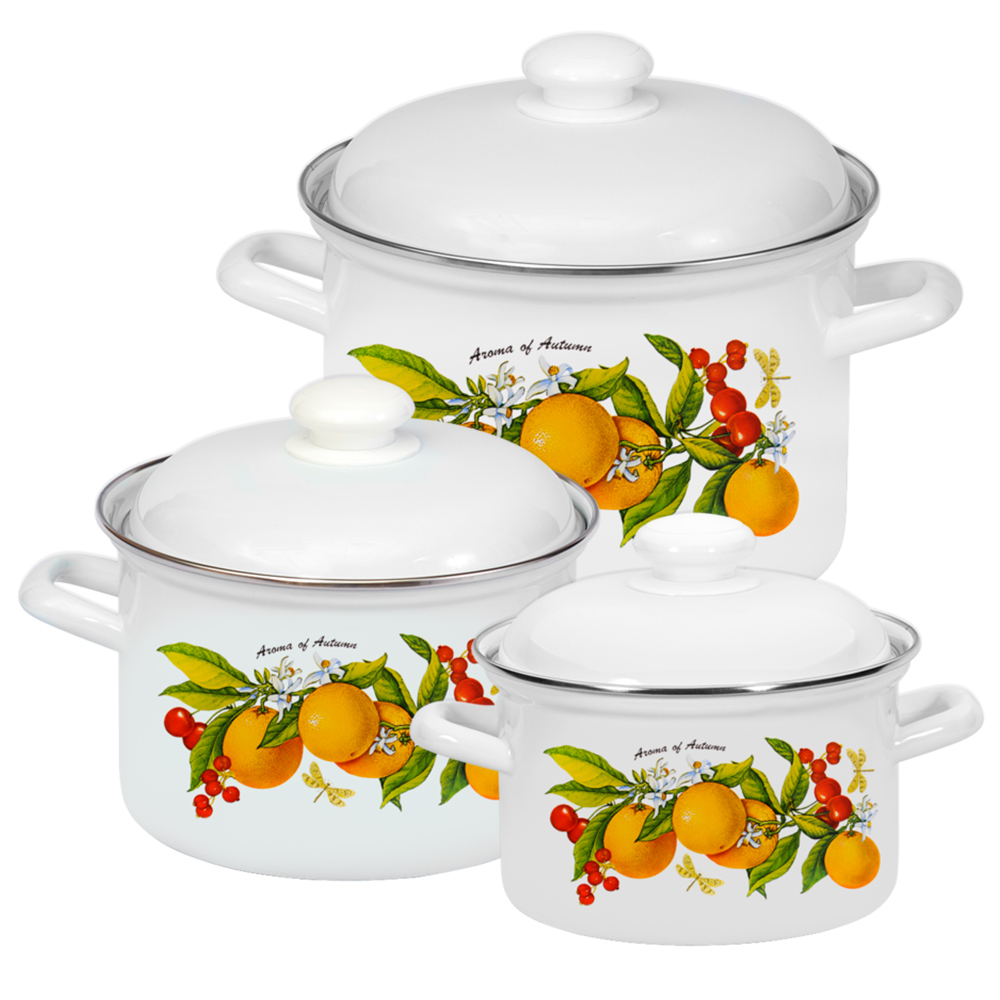 Набор кастрюль (3 шт.): 2л; 3л; 4,5л Лысьвенские эмали Фруктовая фантазия С-007АП2/7