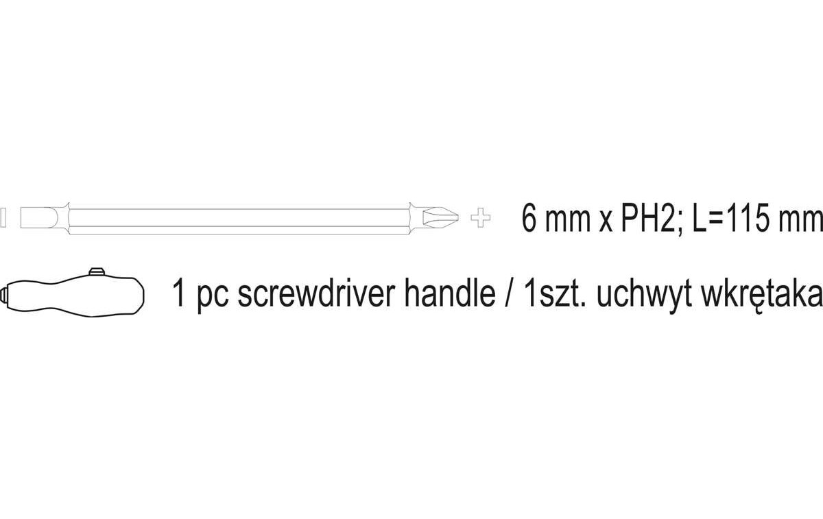 - Отвертка переставная PH2хSL6 мм, L=115 мм;