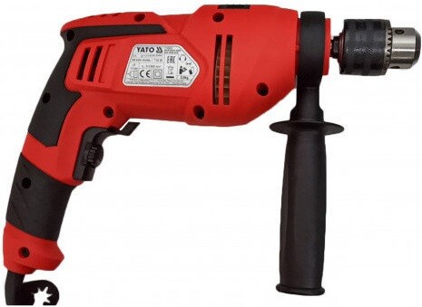 Мощная бытовая дрель Yato (YT-82033) с ударной опцией поможет при выполнении самых распространенных операций дома, в гараже и небольшой мастерской. Несмотря на принадлежность к бытовому классу, электроинструмент имеет современный функционал и дизайн. Классическое сверление позволяет работать с хрупкими материалами. После включения удара можно сверлить бетон, кирпич и т.д. Также может применяться, как шуруповерт, закручивая/выкручивая резьбовые элементы.