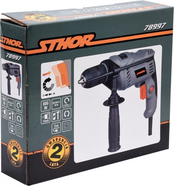 Загалом, дриль ударний Sthor 78997 є надійним та ефективним інструментом, який підійде як для професіоналів, так і для любителів, які хочуть справлятися зі свердлильними роботами самостійно.
