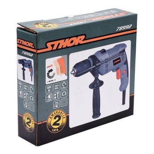 Дриль також має функцію удару, що дозволяє їй свердлити отвори в бетоні та цеглині, що робить її ідеальним інструментом для будівельних робіт та ремонтних робіт. Зручна ергономічна рукоятка забезпечує зручне керування та зменшує втому під час роботи. Крім того, дриль Sthor 78992 легкий і компактний, що дозволяє легко працювати з нею в важкодоступних місцях.