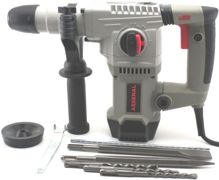набор зубил и буров, предусмотренный в комплектации, предназначен для демонтажа, штробления, обычного сверления и ударного;