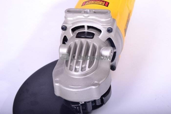 Для защиты как мастера, так и окружающих людей предназначен выключатель нулевого напряжения. При исчезновении и последующем возобновлении напряжения в сети, электрическая болгарка DEWALT не запустится самопроизвольно. Для пуска двигателя потребуется сначала снять блокировку