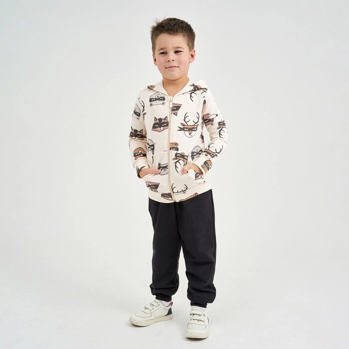 Толстовка для мальчика, цвет бежевый/звери, рост 110