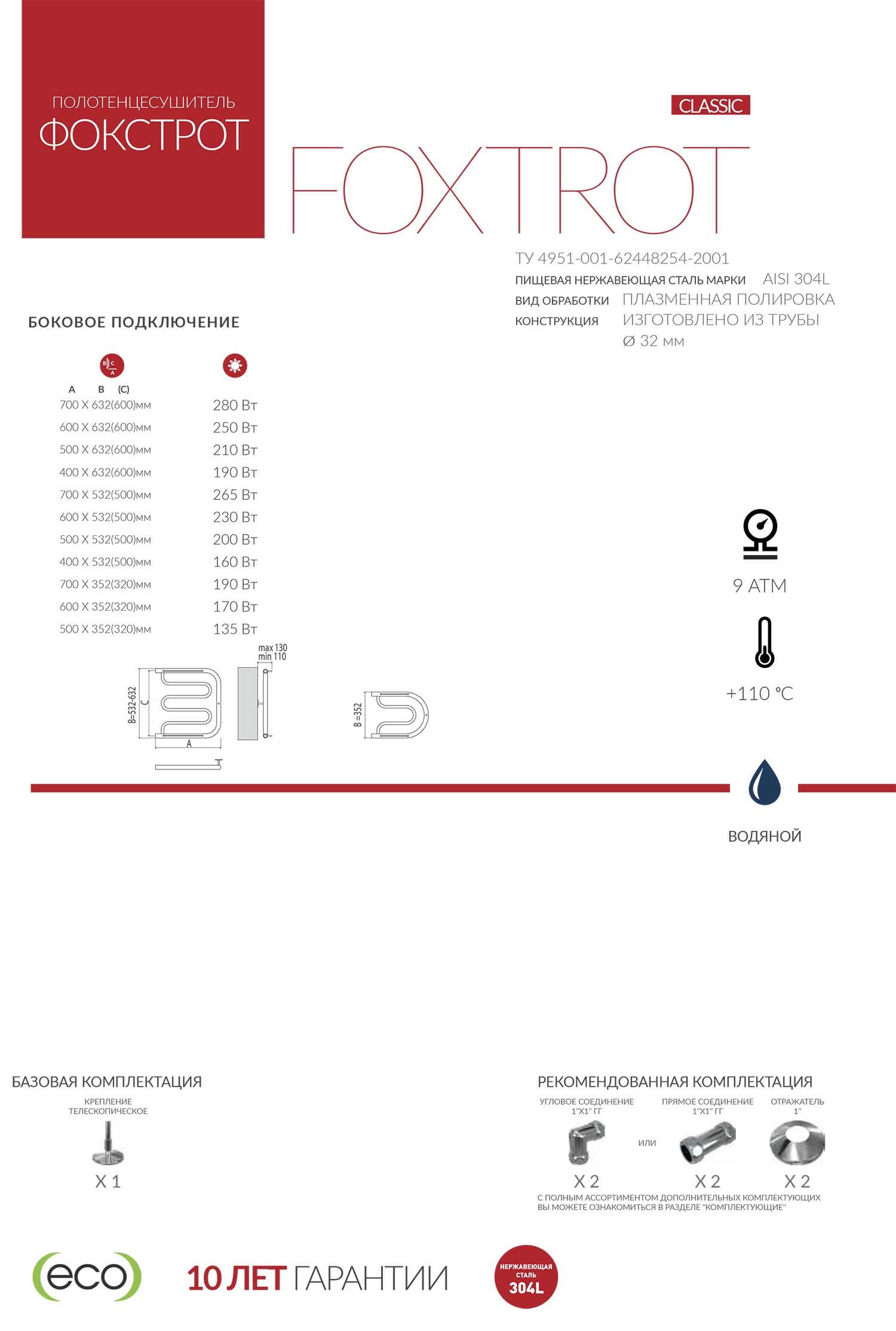 Полотенцесушитель Terminus Фокстрот способен выдерживать агрессивное воздействие факторов окружающей среды не теряя при этом прочность и не подвергаясь коррозии. Тип подключения боковой. В комплект входит:
