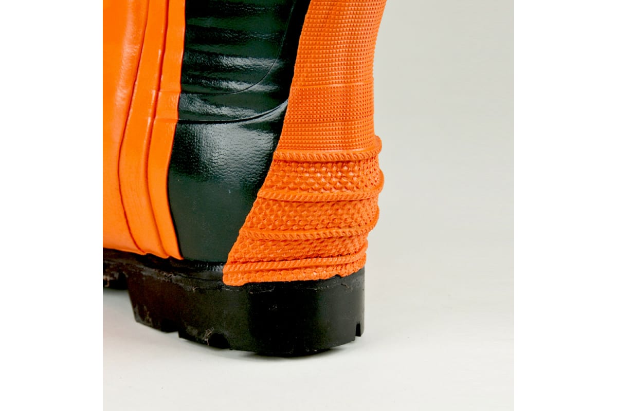Верхняя часть сапога оборудована легкой системой шнуровки, которая надежно фиксирует ногу во время работы и препятствует попаданию стружки в обувь.