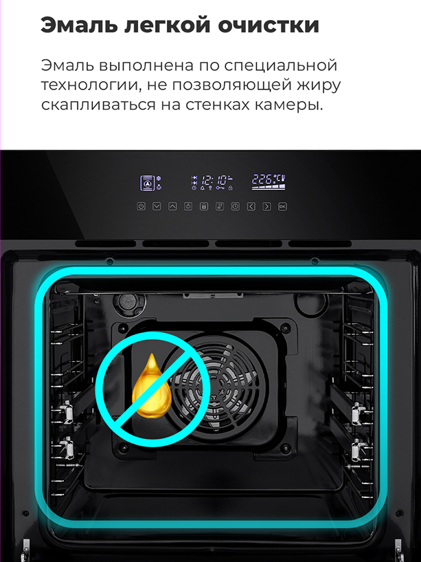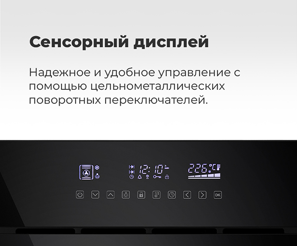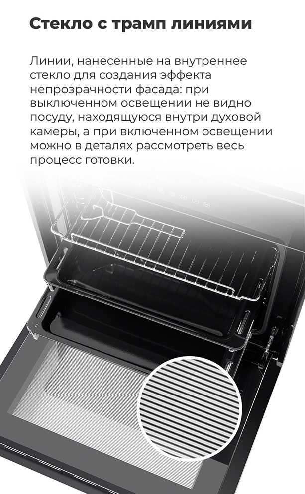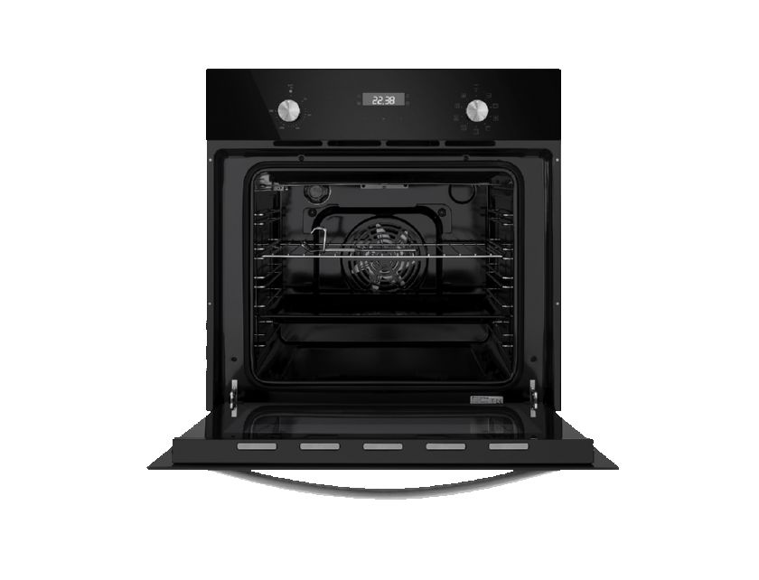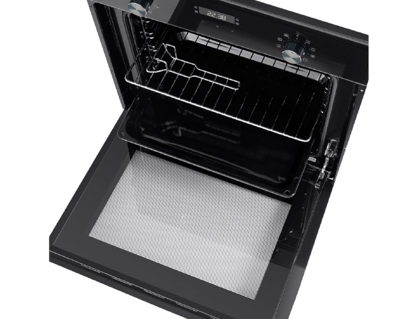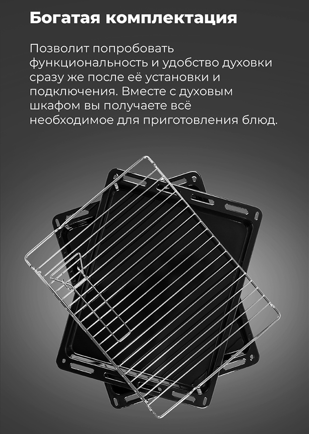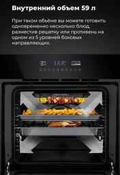 Объём, л: 59, комплектация: 5-и уровневые хромированные боковые направляющие, двойное стекло дверцы, тяжелые цельнометаллические полнотелые ручки управления и дверцы духовкиЦвет: черное стекло