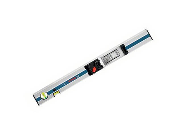 Направляющая шина R60 Bosch используется в качестве ватерпаса совместно с лазерным дальномером Bosch GLM 80 и GLM 100 C. Прибор надежно фиксируется на шине, которая оснащена дополнительными вертикальным и горизонтальным уровнями. Точность измерения ±0,05º. Можно, например, привести в горизонтальное положение плоские поверхности во время строительства.