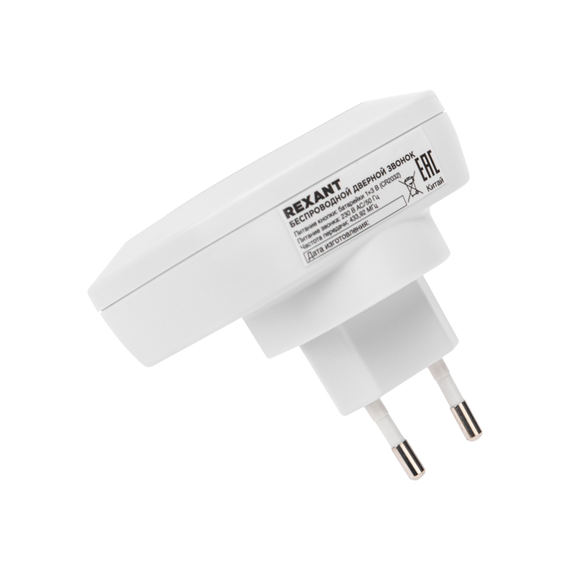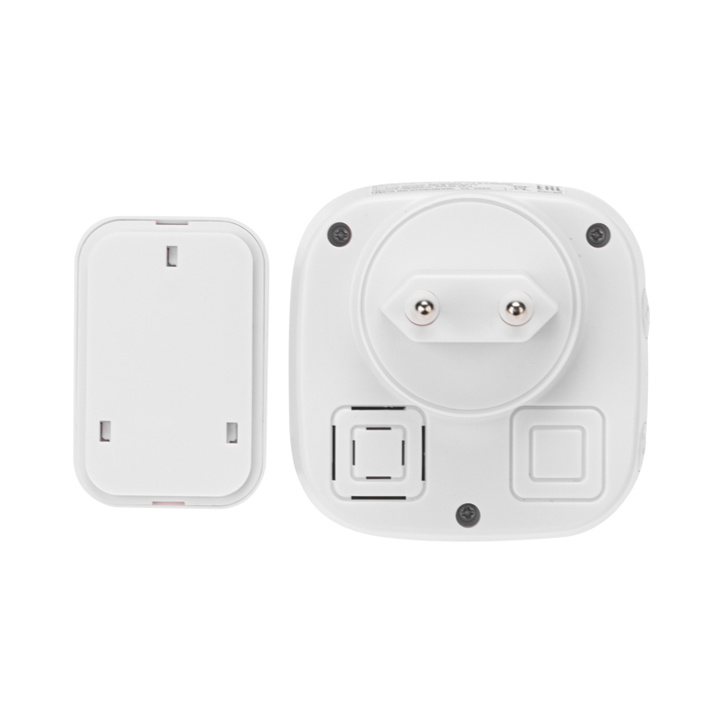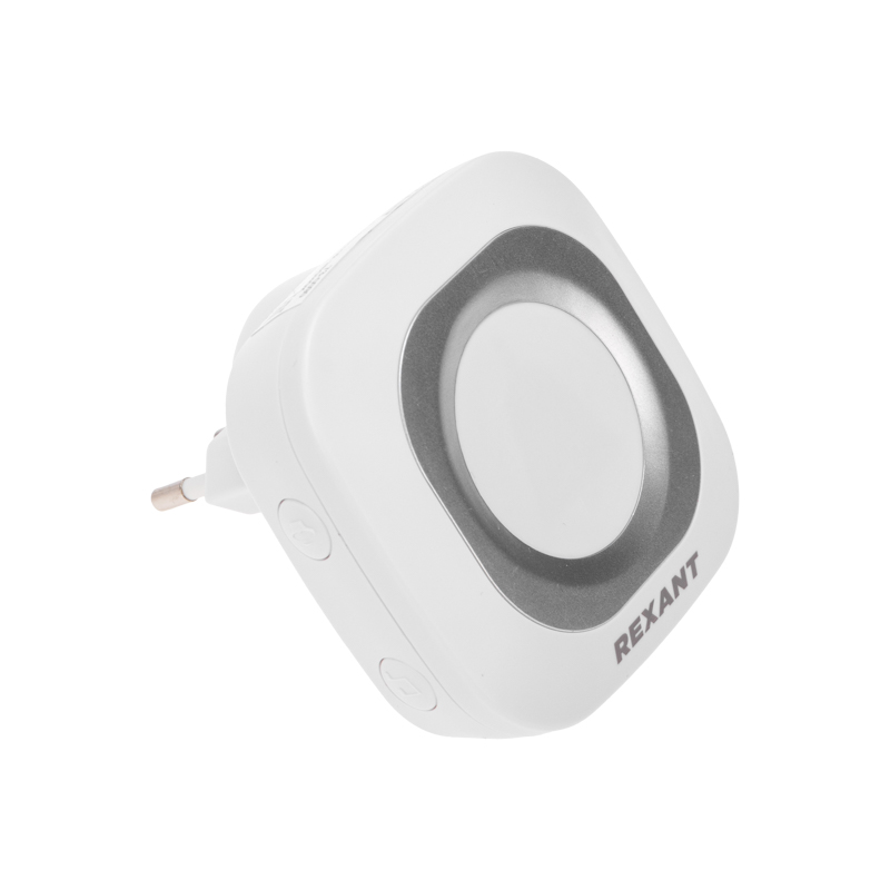 Беспроводной дверной звонок в розетку мигающий 36 мелодий IP44 (белый/серый) REXANT