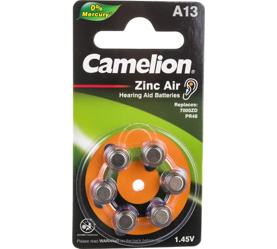 Элемент питания ZA13 (уп-ка 6шт) BL-6 Mercury Free 1,45V (д/слух.аппаратов) 12824 Camelion
