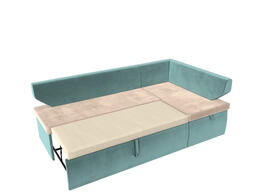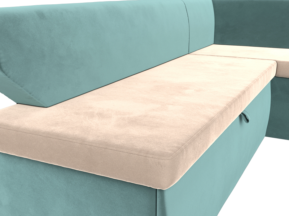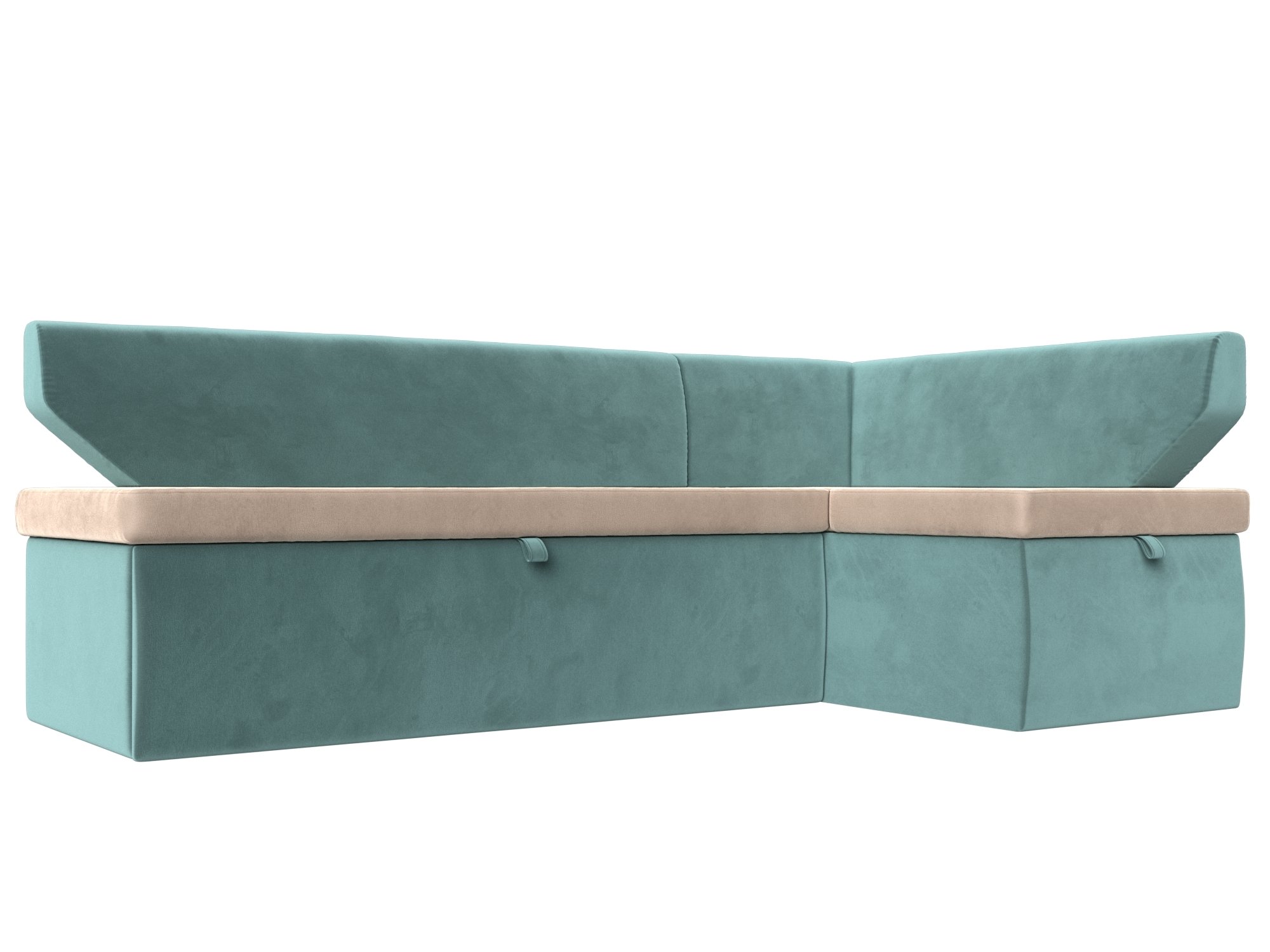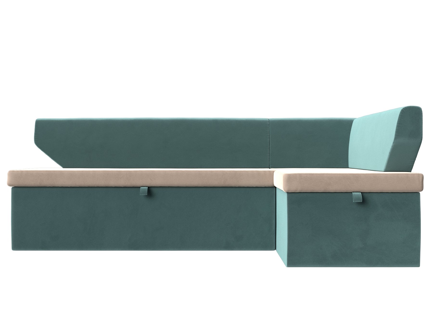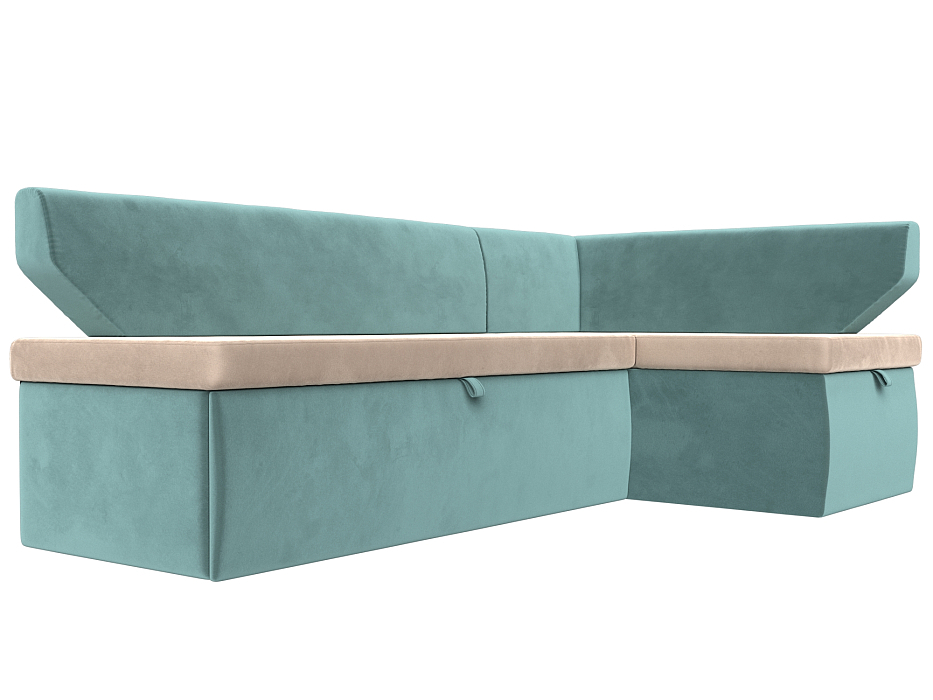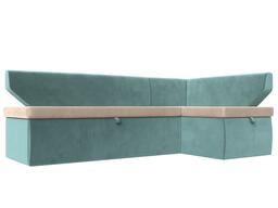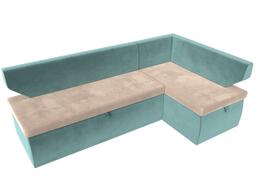 Кухонный угловой диван Омура Велюр бежевый\бирюзовый