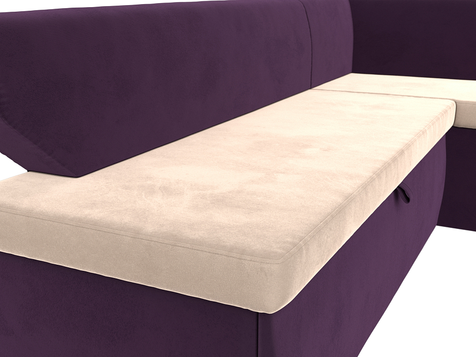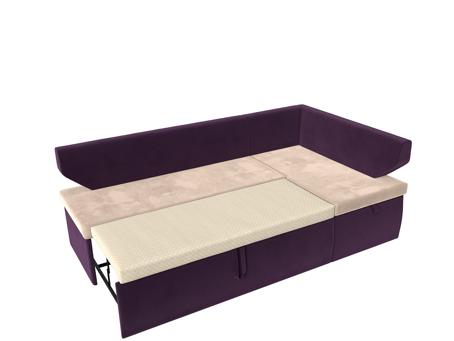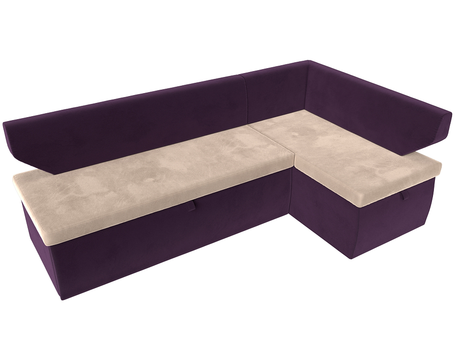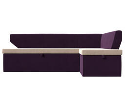 Кухонный угловой диван Омура Велюр бежевый\фиолетовый