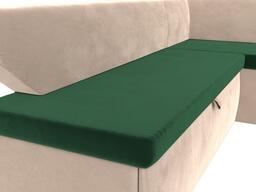 Кухонный угловой диван Омура Велюр Зеленый\Бежевый