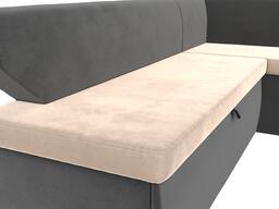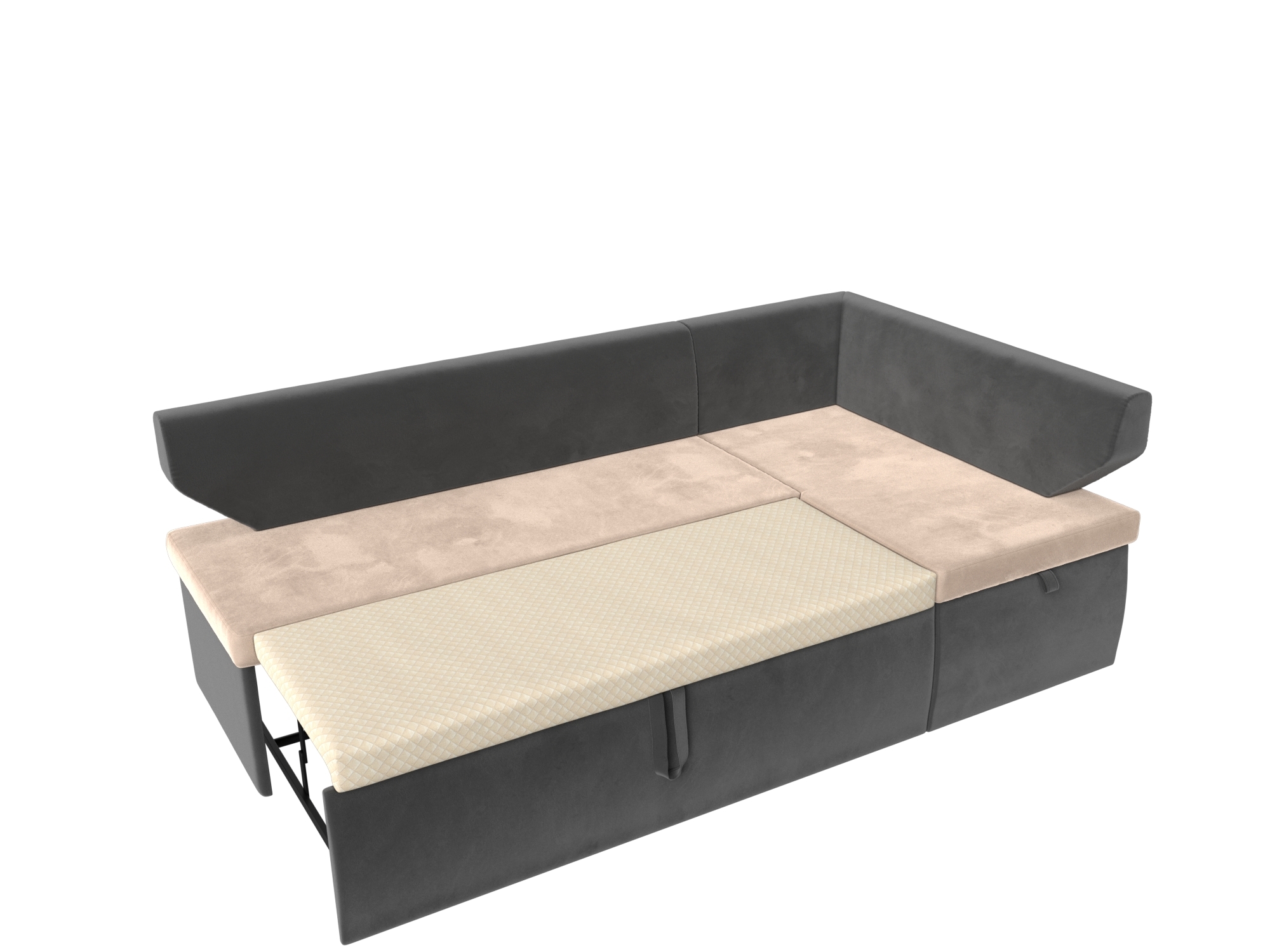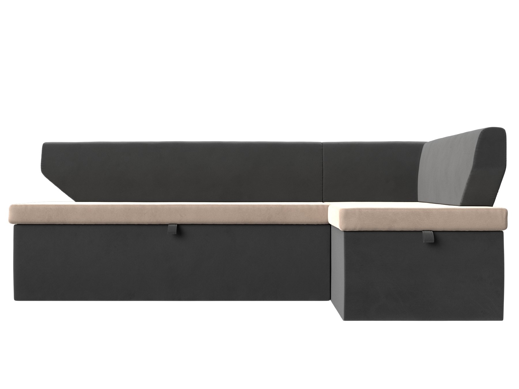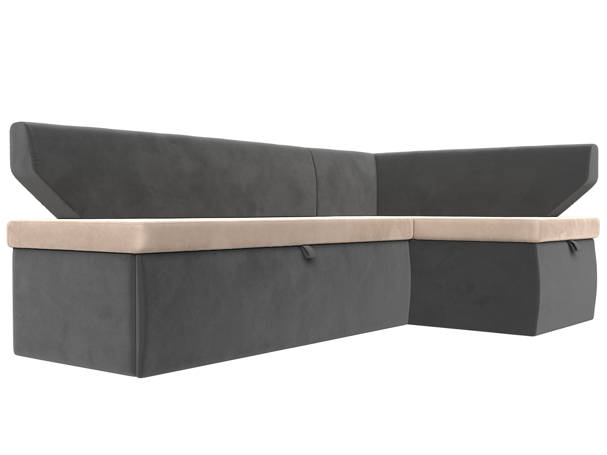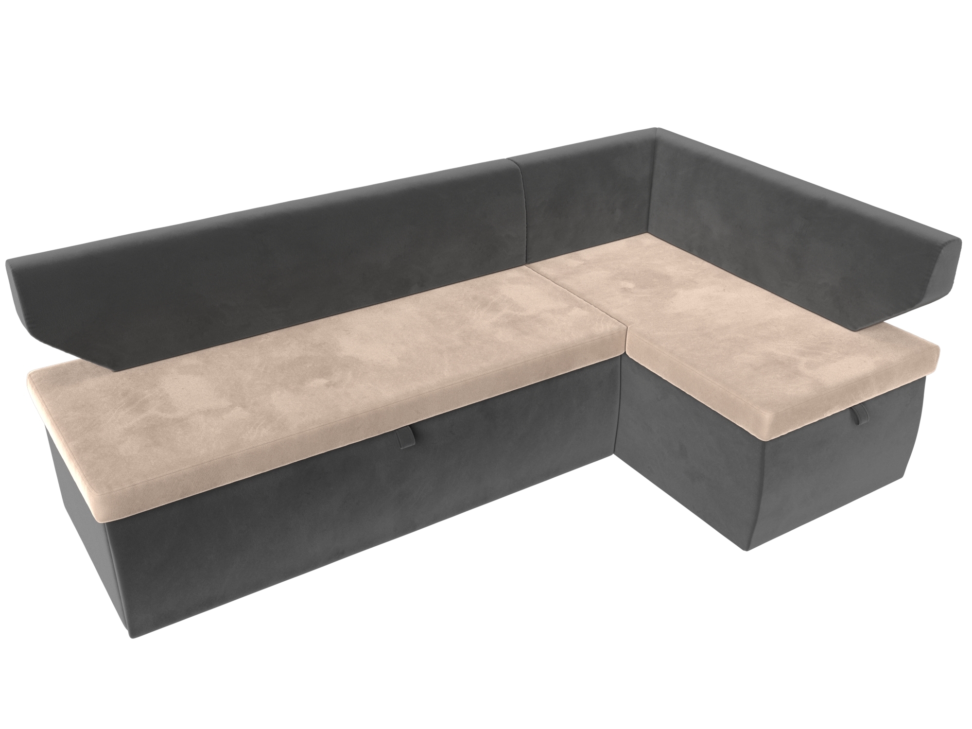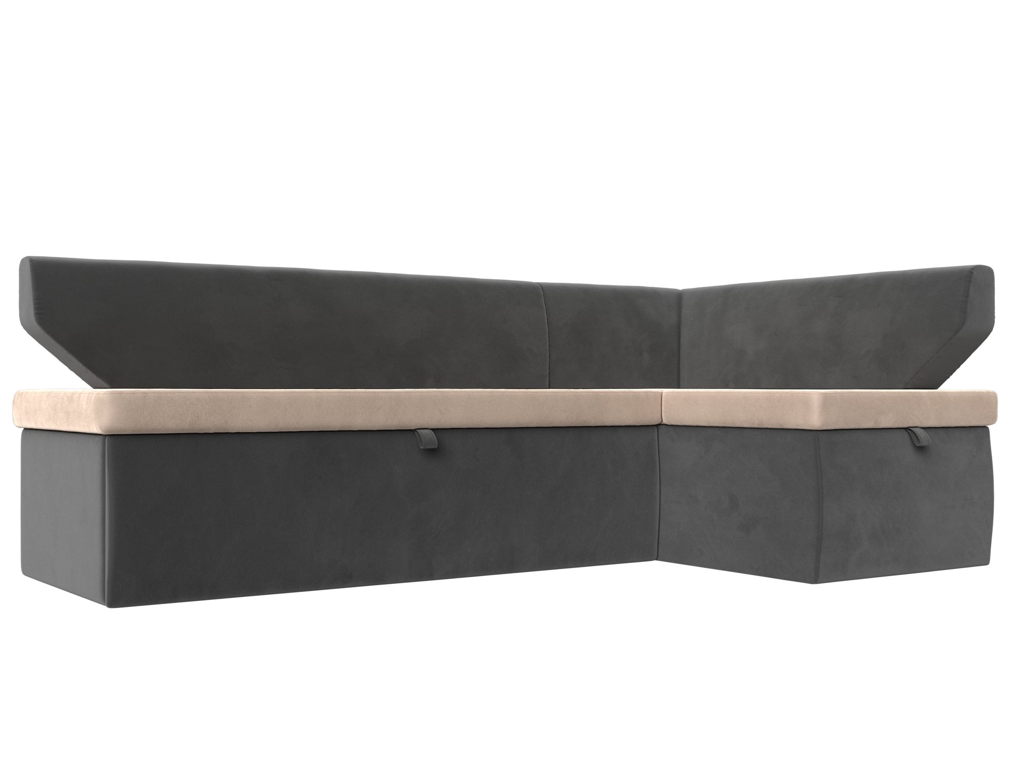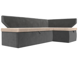 Кухонный угловой диван Омура Велюр бежевый\Серый