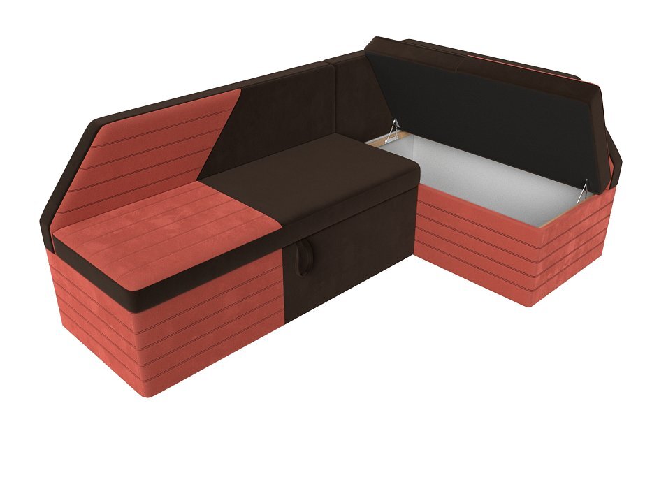 Кухонный угловой диван Дуглас правый угол Микровельвет Коричневый\Коралловый