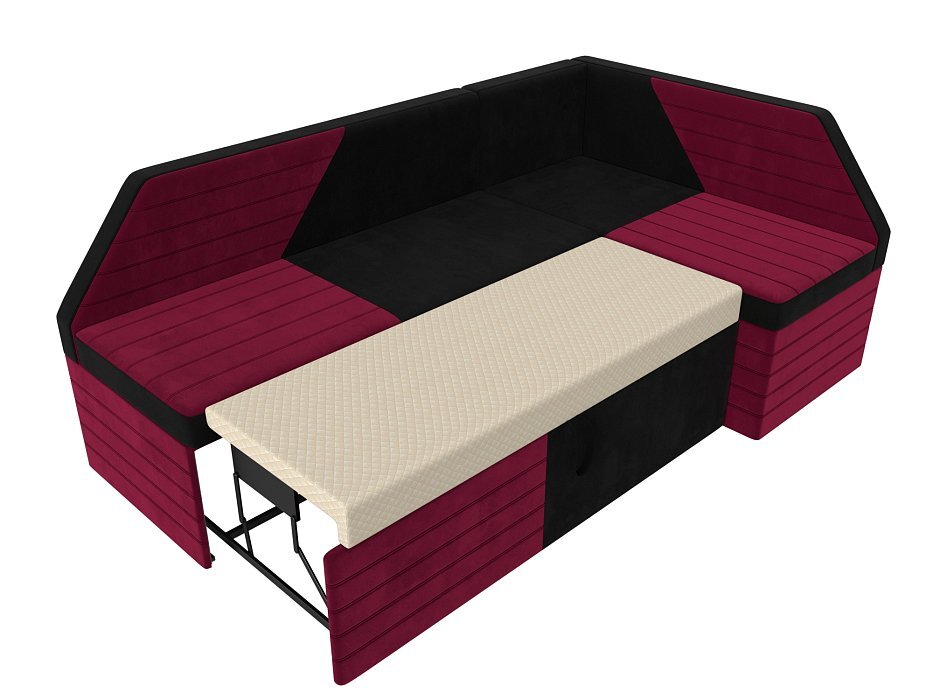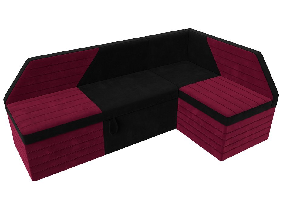 Кухонный угловой диван Дуглас Микровельвет Черный\Бордовый