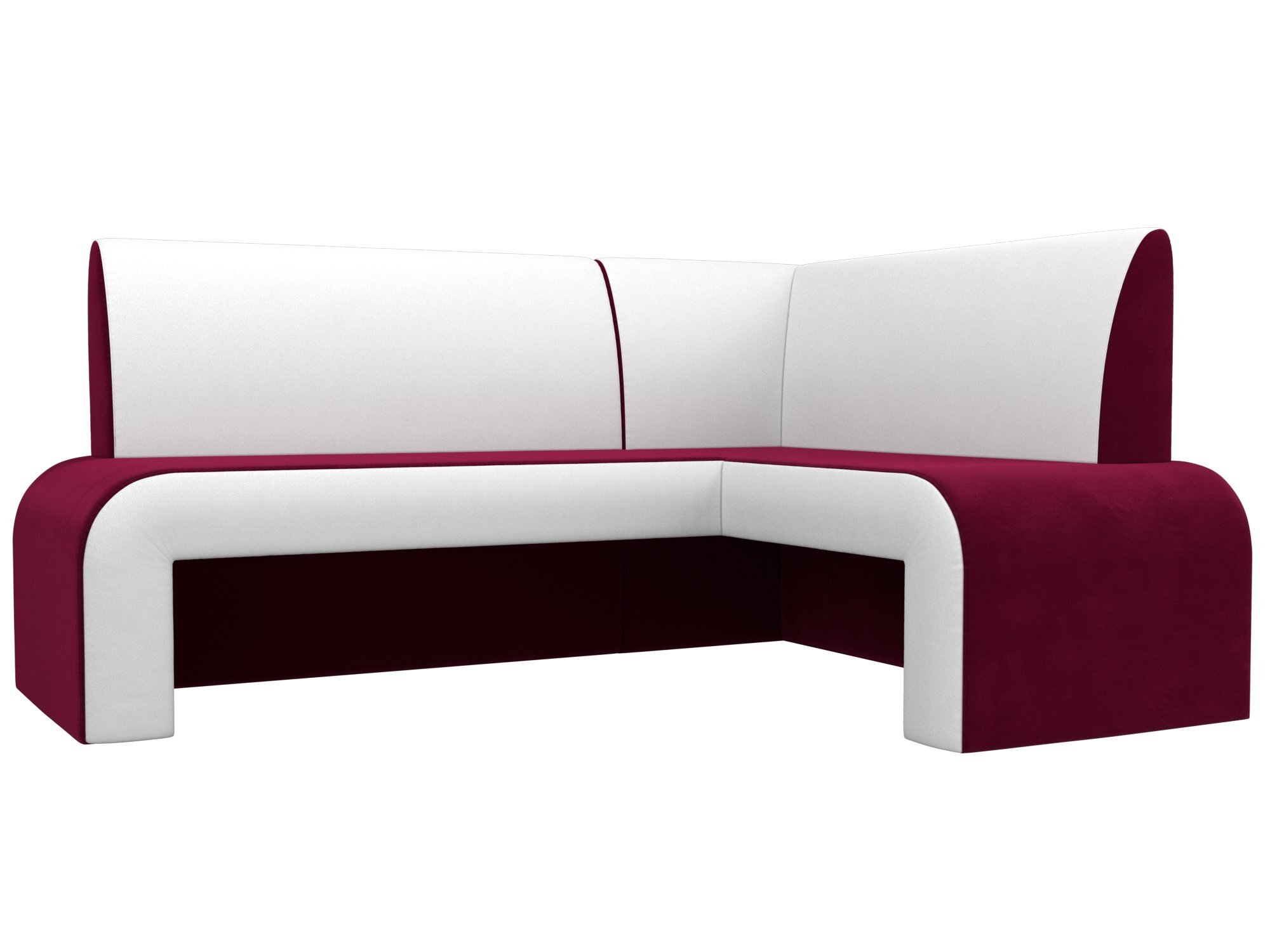 Кухонный угловой диван Кармен Микровельвет\Экокожа Бордовый\Белый