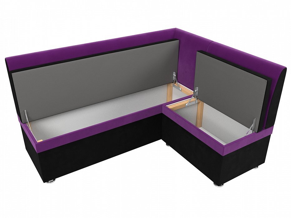 Кухонный угловой диван Уют Микровельвет черный\фиолетовый