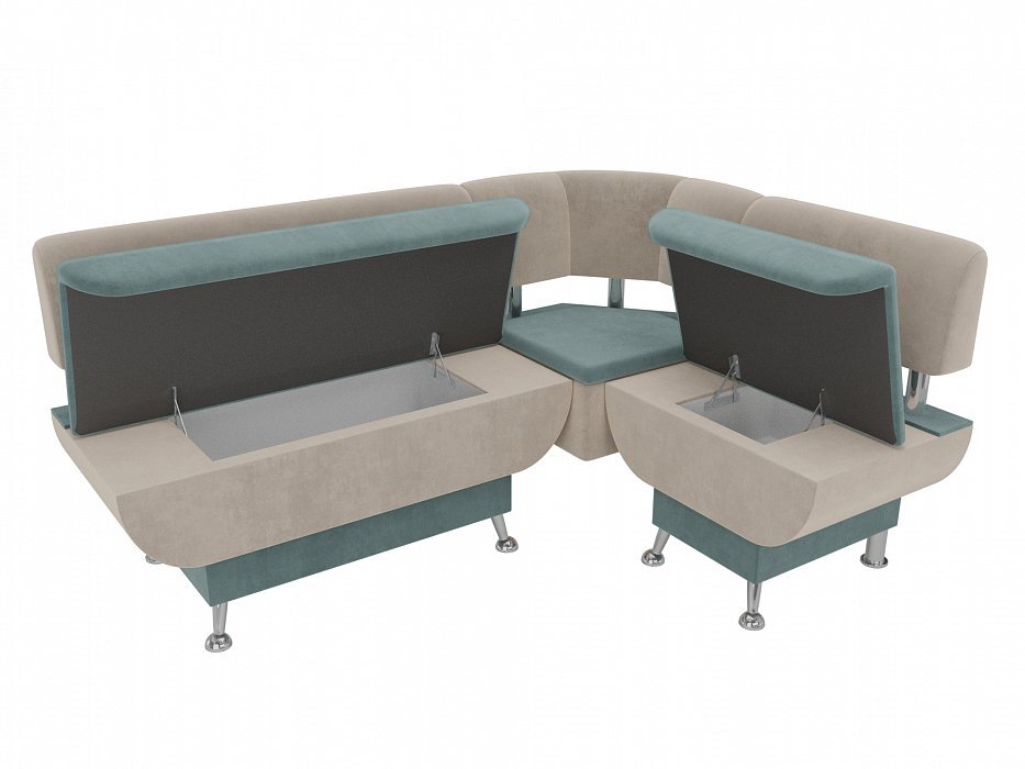 Кухонный угловой диван Альфа правый угол Велюр Бирюзовый\Бежевый