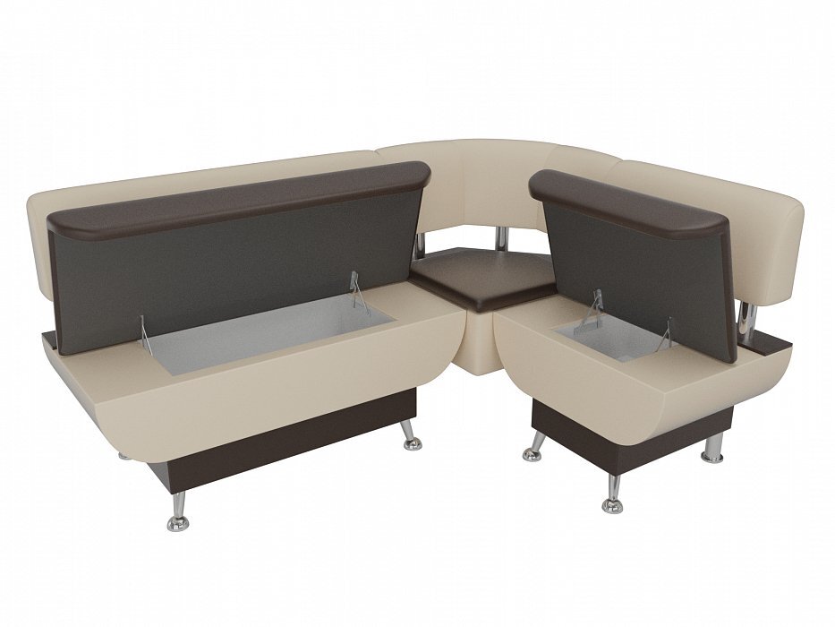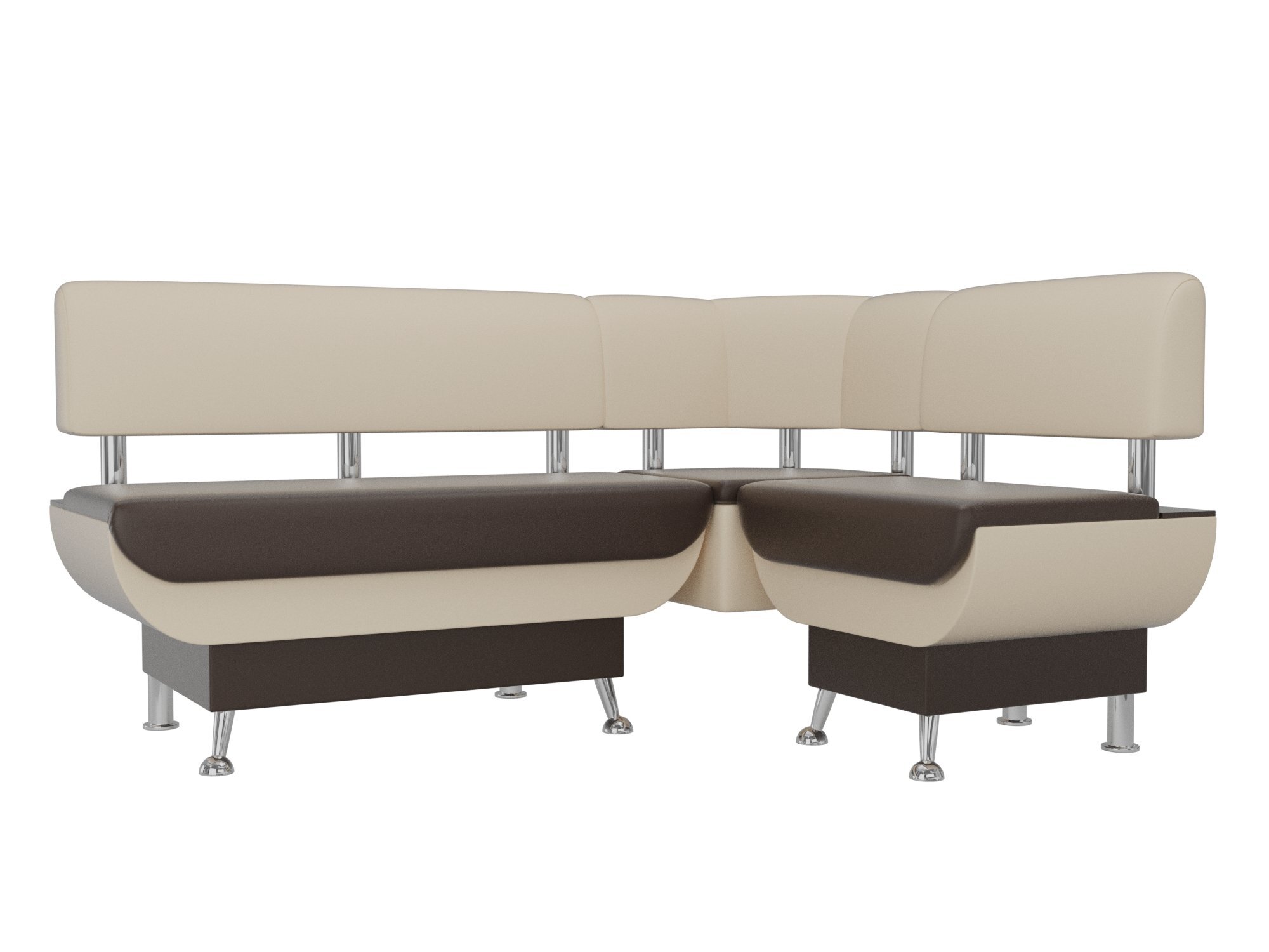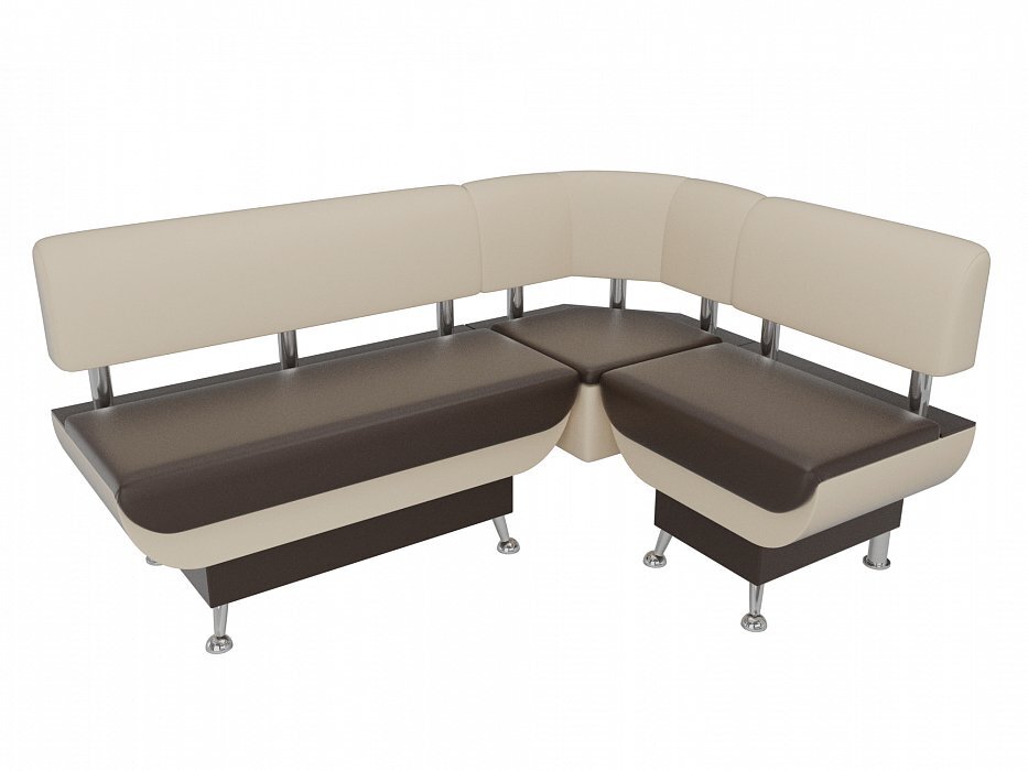Кухонный угловой диван Альфа Экокожа Коричневый\Бежевый