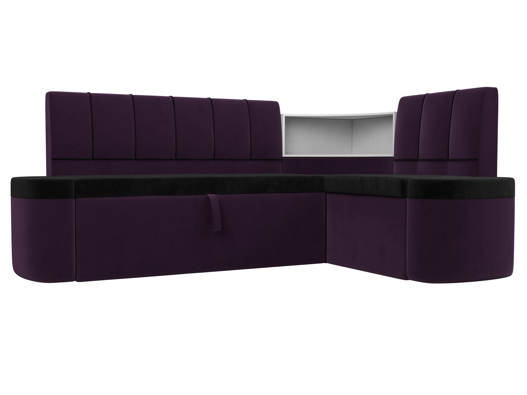 Кухонный угловой диван Тефида Велюр черный\фиолетовый