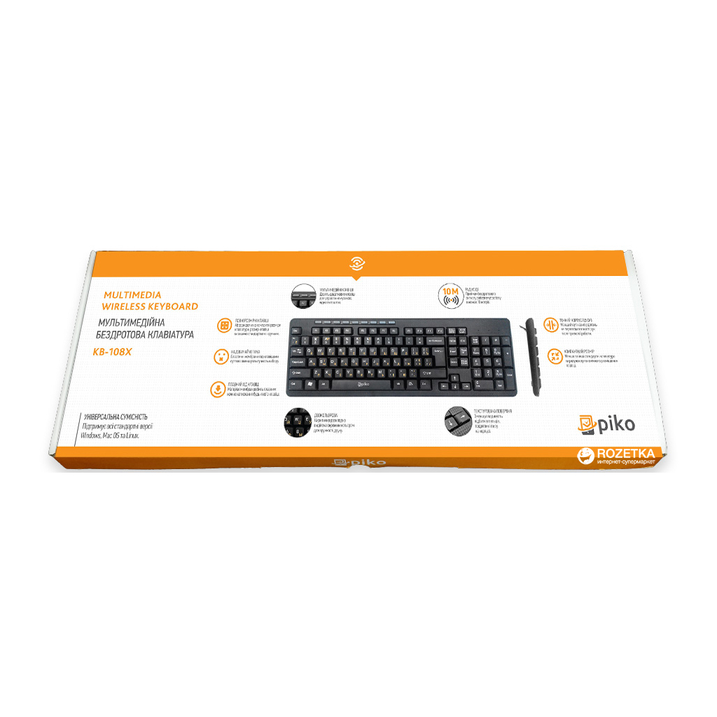 ЕргономікаБездротова клавіатура з ергономічним розміщенням повнорозмірних і додаткових мультимедійних клавіш. Завдяки цьому, вона містить набір усіх необхідних кнопок і водночас забирає менше місця, проти інших традиційних моделейПрактичне покриття корпусуКорпус клавіатури покритий текстурованим малюнком, який суттєво зменшує видимість відбитків пальців, пилу та подряпинДвобарвна розміткаЛатиниця й кирилиця нанесені різними кольорами для зручності друку. Кирилиця містить й українську, й російську мовуБездротовий зв'язокNano usb-ресивер забезпечує радіус дії до 10 м. на бездротовій частоті 2.4 ГГцМультимедійні клавішіДодаткові кнопки забезпечують швидкий доступ до таких функцій операційних систем, як регулювання звуку, перемикання пісень, виклик браузера та ін./p>БезшумністьМатеріал мембран робить кожне натискання тихим, плавним і комфортнимТовщина корпусу — всього 1.5 смЗавдяки цьому долоні користувача перебувають під меншим кутом, і після тривалої роботи кисті рук не перевтомлюютьсяТип і ємність елементів живлення: АААКількість елементів живлення: 2 штЕлементи живлення в комплекті не поставляються