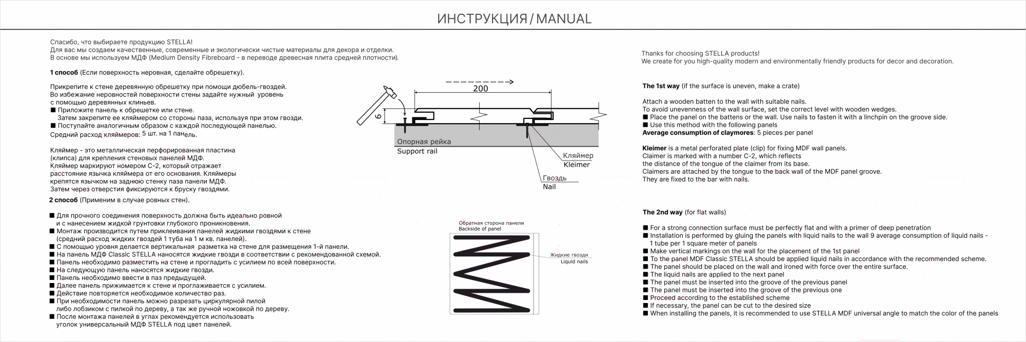 • Монтаж жидкие гвозди (клей), монтажная планка