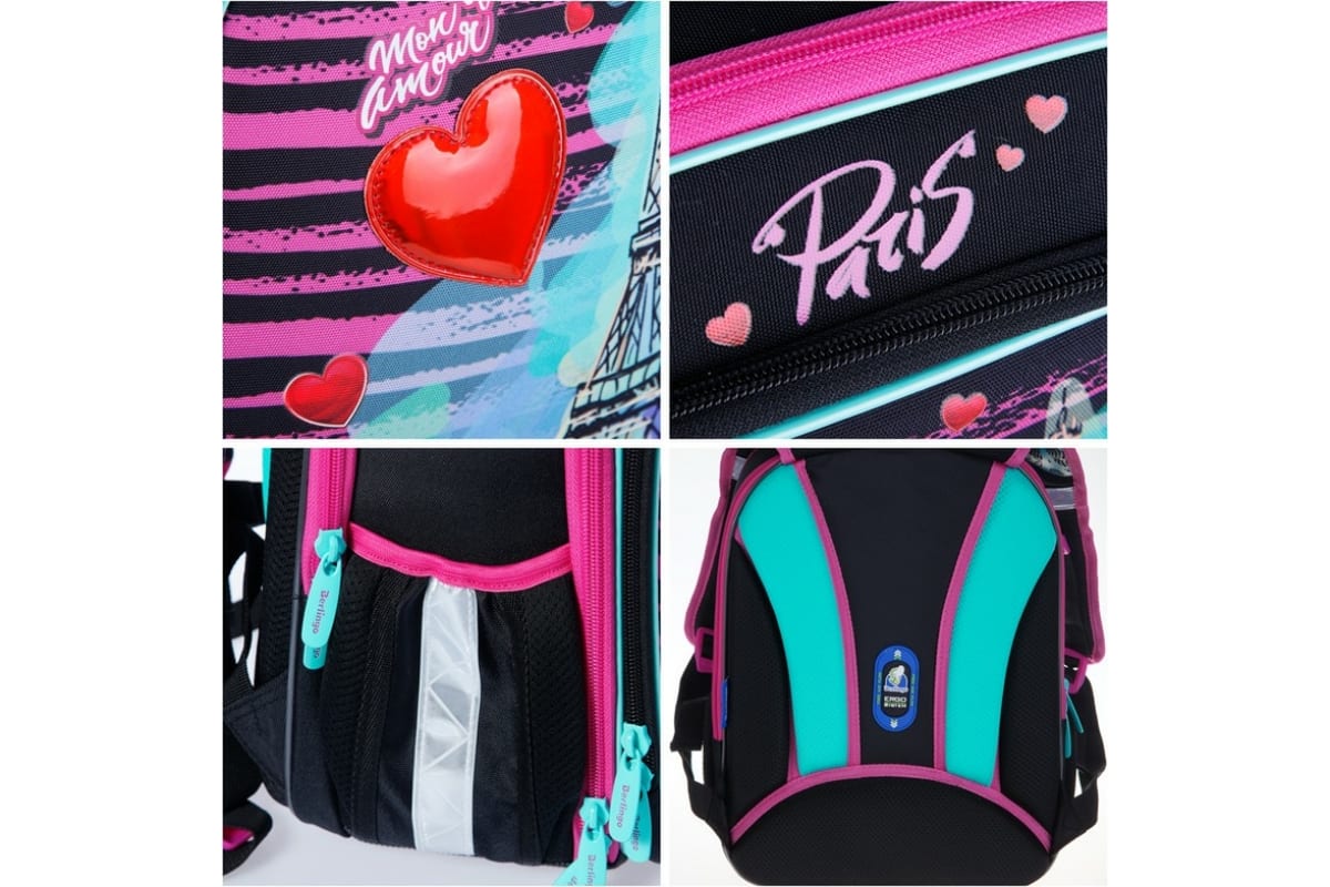 Ранец BERLINGO Expert Plus Mon amour 37х28х18 см, 3 отделения, 2 кармана, анатомическая спинка RU05140 изготовлен из легкого экологичного ЭВА материала, который не подвержен деформации, не выцветает, легко чистится от загрязнений.