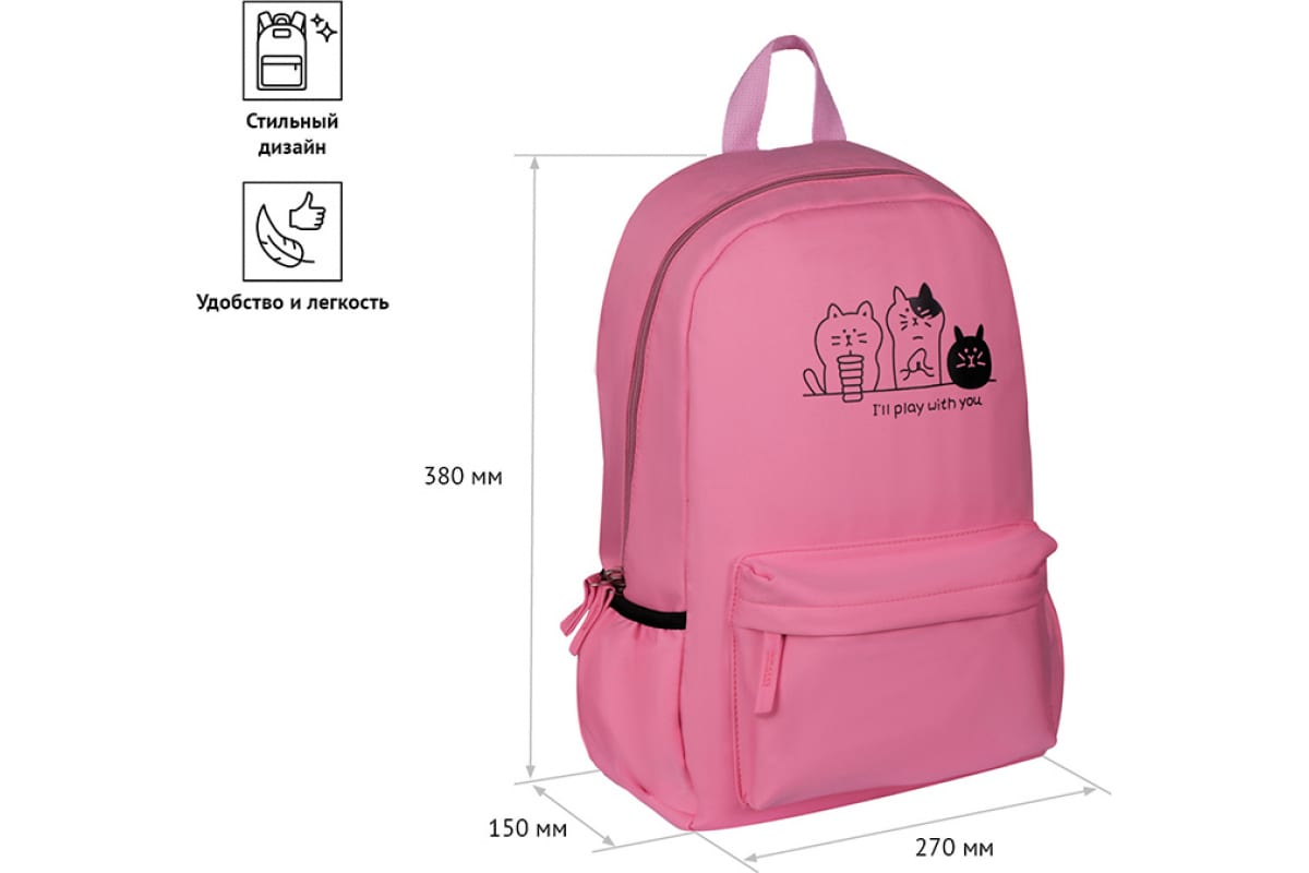 Рюкзак ArtSpace Style Lets play 38х27х15см, 1 отделение, 3 кармана, уплотненная спинка Tn_19825 удобен как для учебы, так и для спорта.