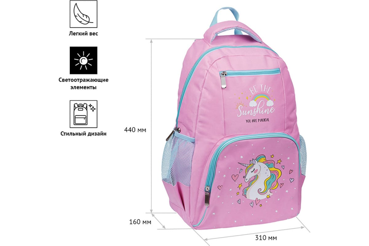 Рюкзак ArtSpace School Unicorn, 44х31х16см, 1 отделение, 4 кармана, уплотненная спинка Uni_17688 будет удобен как для учебы, так и для спорта.