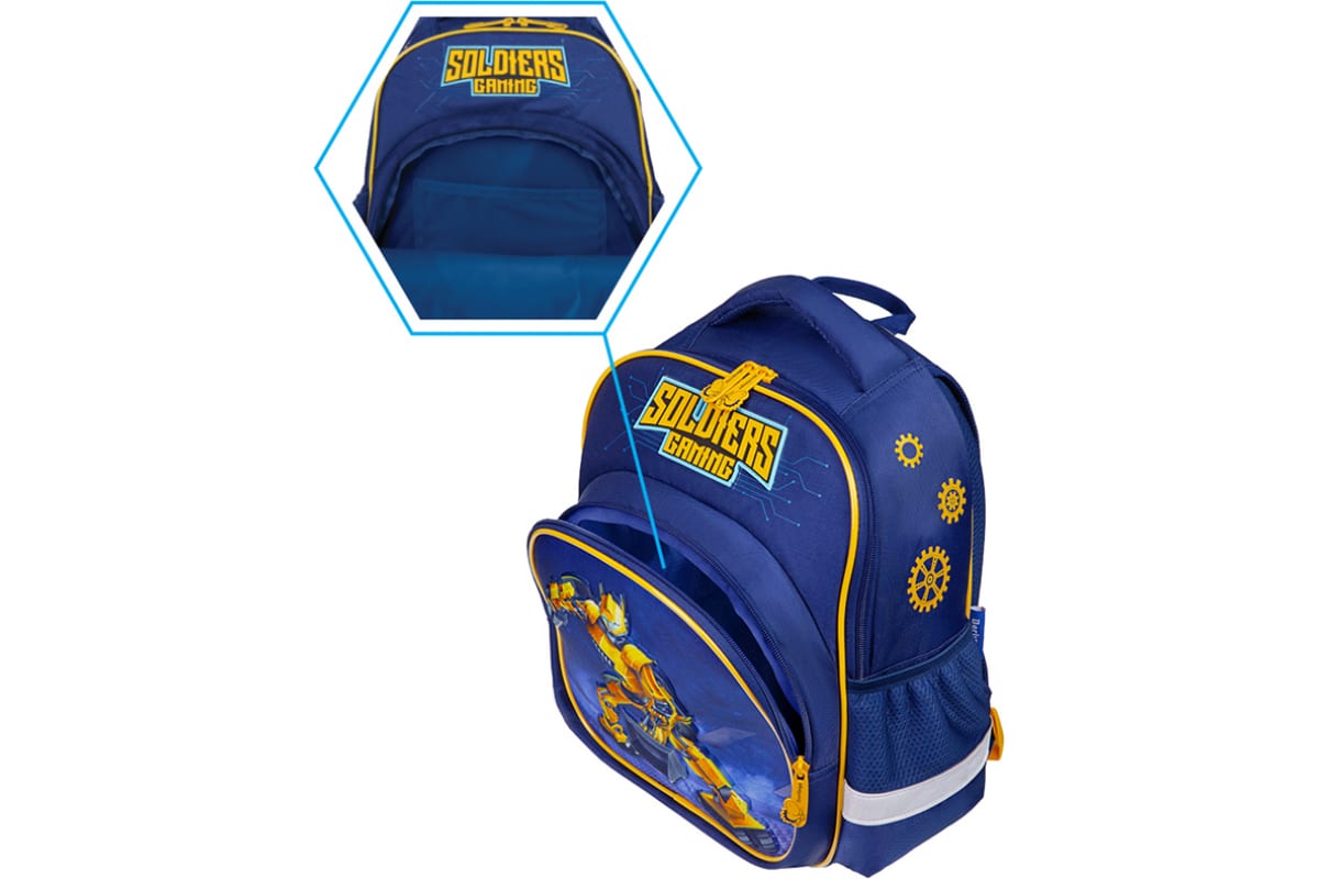 Рюкзак с эргономичной спинкой BERLINGO Kids Robogame 36х27х12см, 1 отделение, 3 кармана, LED-кант RU07004 подходит для посещения кружков и развиваек.