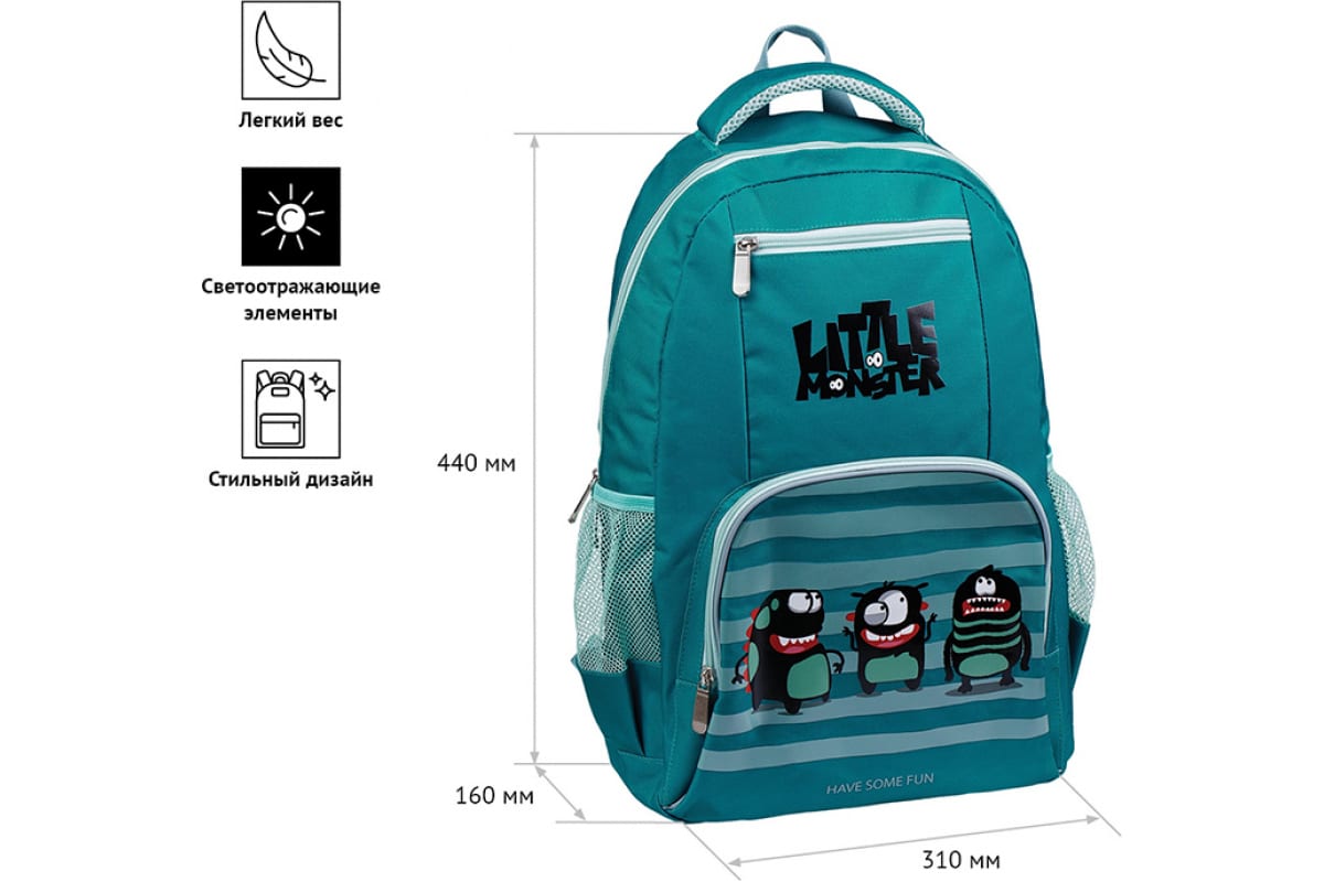 Рюкзак ArtSpace School Little Monster, 1 отделение,4 кармана, уплотненная спинка Uni_17691 будет удобен как для учебы, так и для спорта.