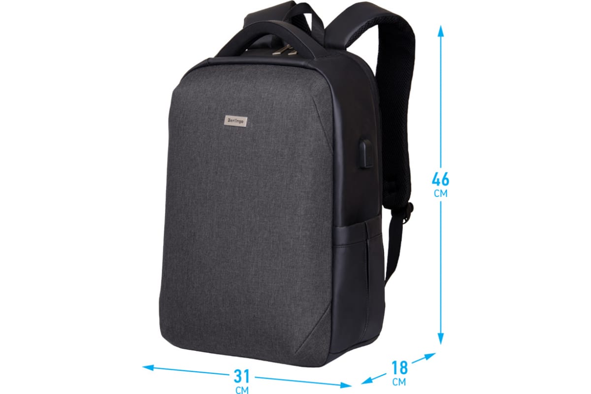 Антивандальный рюкзак с эргономичной спинкой BERLINGO Secure grey, 1 отделение, 3 кармана, USB-разъем, RU06960 выполнен из высокопрочного полиэстера.