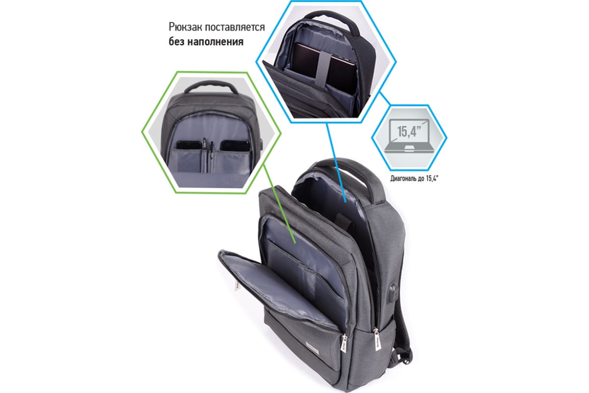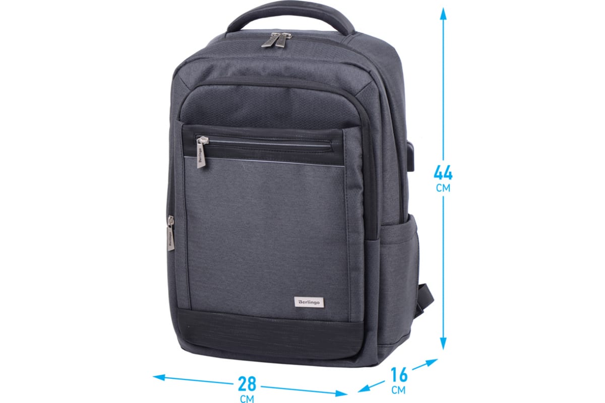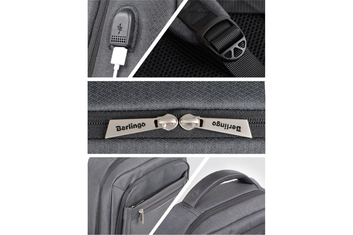 Рюкзак с эргономичной спинкой BERLINGO City Modern, 2 отделения, 4 кармана, отд. для ноут, USB разъем, RU06950 – строгий, лаконичный и универсальный, отличается стильным оформлением и функциональностью.