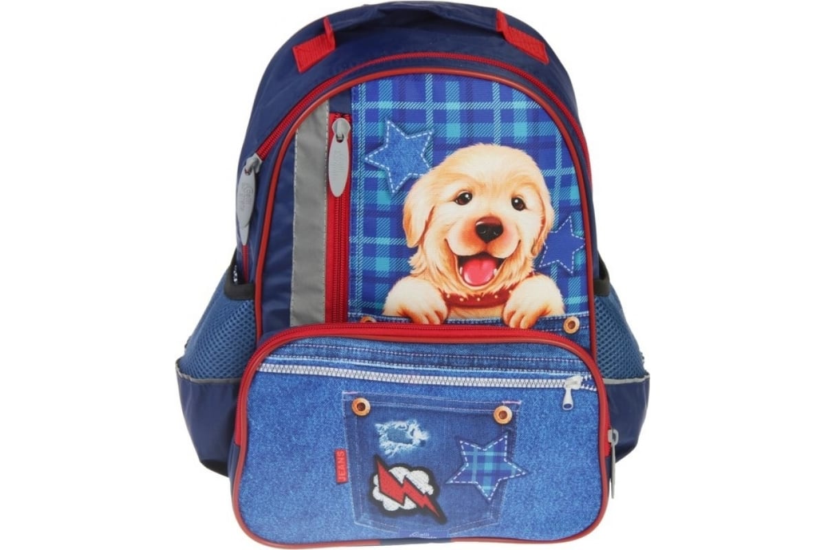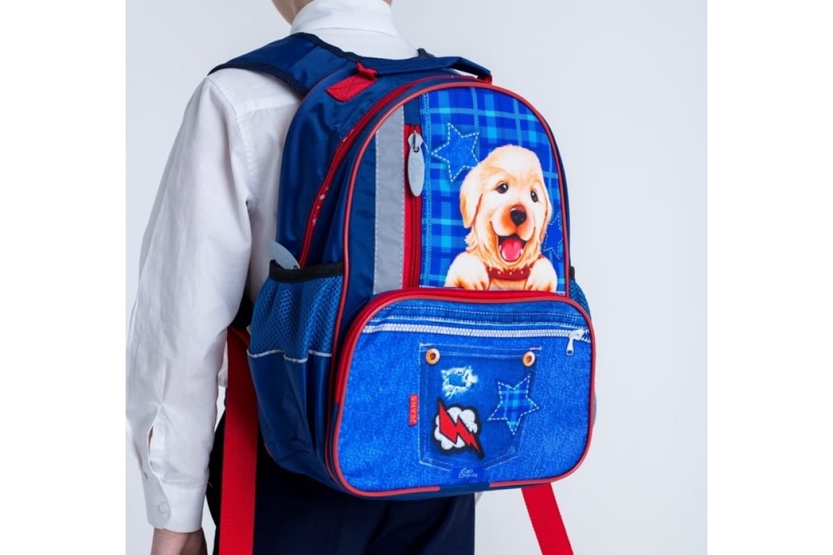 Школьный рюкзак Calligrata эргономичная спинка, Степашка ОРТ 37х26х13, универсальный, Щенок на джинсе, синий 4253358