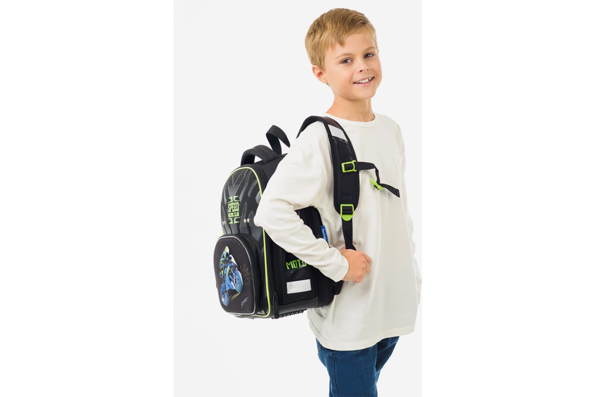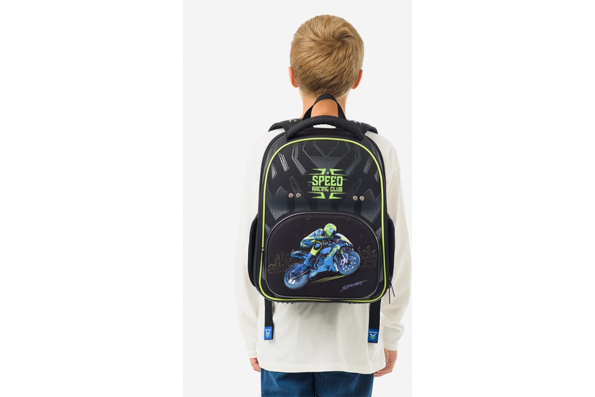 Ранец с анатомической спинкой BERLINGO Profi MOTO speed 36х28х18 см, 2 отделения, 4 кармана, RU05410 предназначен для детей младшего школьного возраста.