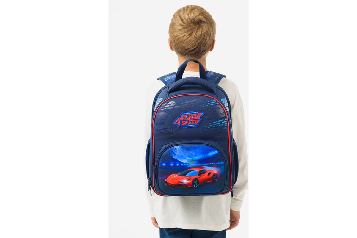 Ранец с анатомической спинкой BERLINGO Profi Super fast 36х28х18 см, 2 отделения, 4 кармана RU05408 предназначен для детей младшего школьного возраста.