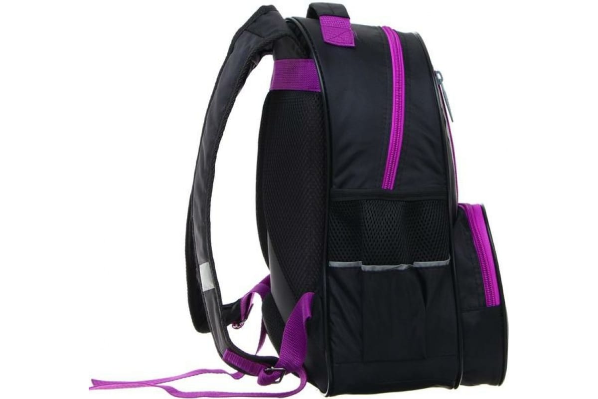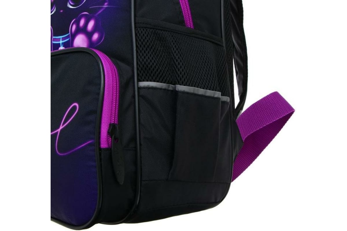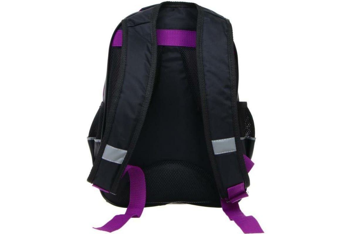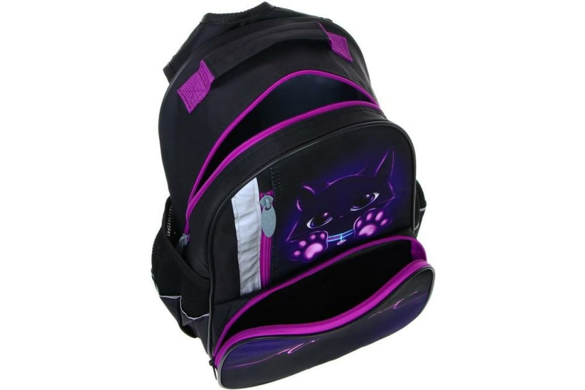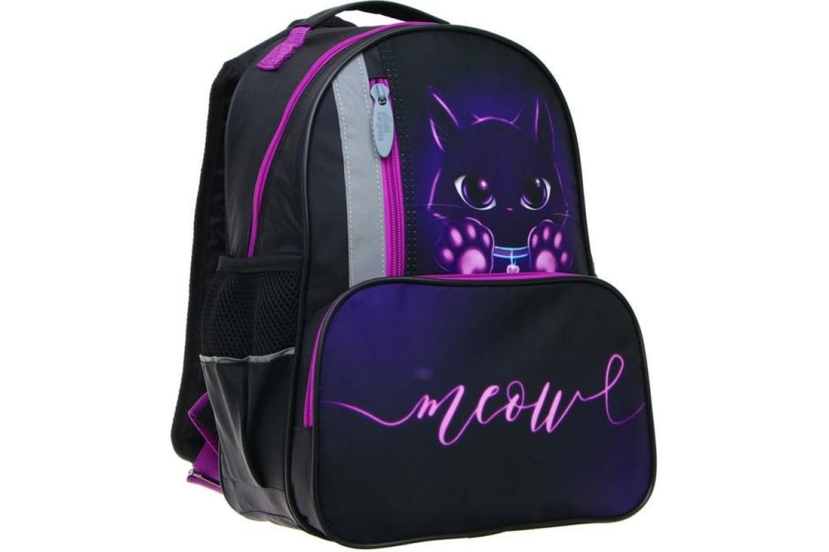 Школьный рюкзак Calligrata эргономичная спинка, Степашка ОРТ 37х26х13, для девочек, Котик, сиреневый/черный 4065574 7065574