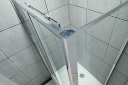 Душевой уголок 120x80x195 см. Дверь двустворчатая раздвижная. Широкий входной проем. Ударопрочное закаленное стекло 6 мм. Покрытие стекла - EasyClean. Ролики - металлические, двойные, на подшипниках, с хромированными накладками. Профиль - алюминий с покрытием UltraShine. Ручки - стальные, хромированные. Силиконовые уплотнители