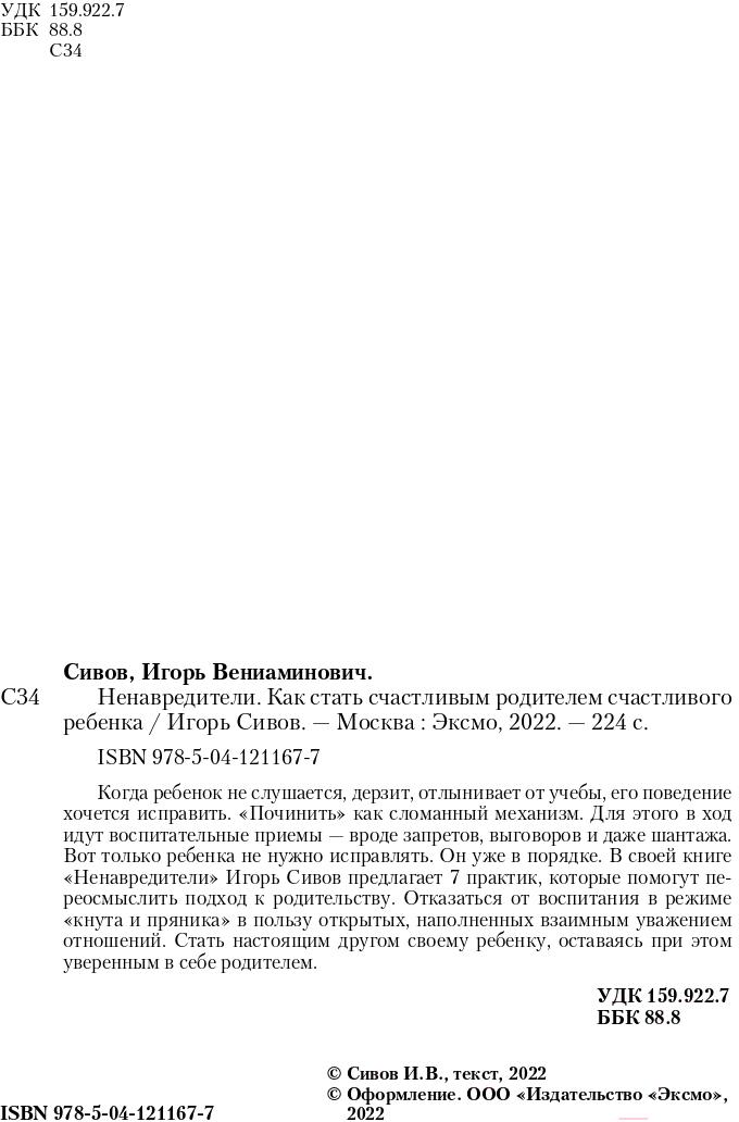 Книга Эксмо Ненавредители. Как стать счастливым родителем (Сивов И.В.)