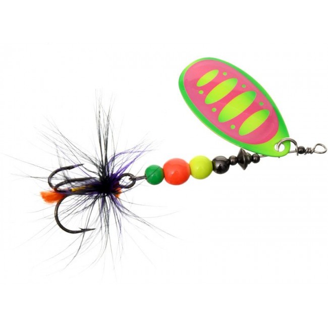 Flagman Twidd – вращающиеся блесны, обладающие высокой уловистостью и качеством изготовления. Конструктивно они представляют собой вращающийся на проволочной оси лепесток с сердечником из нескольких разноцветных шариков и мушкой на тройнике. Вес сердечников разных моделей варьируется набором размещенных на их оси шариков различных диаметров. Лепесток имеет классическую округлую форму типа Aglia. Отклоняясь от оси на 40-45 градусов, он отлично заводится с первых оборотов катушки и стабильно работает как на течении, так и в стоячей воде, продолжая свое вращение даже на небольших паузах в проводке. Центр тяжести вертушек Twidd смещен ближе к задней части. Такое конструктивное решение существенно влияет на увеличение дальности и точности заброса. Все блесны Twidd от компании Flagman комплектуются заводными кольцами и острейшими тройниками VMC, а видовое разнообразие пойманных с их помощью трофеев лишний раз доказывает универсальность и высокую эффективность этих приманок!