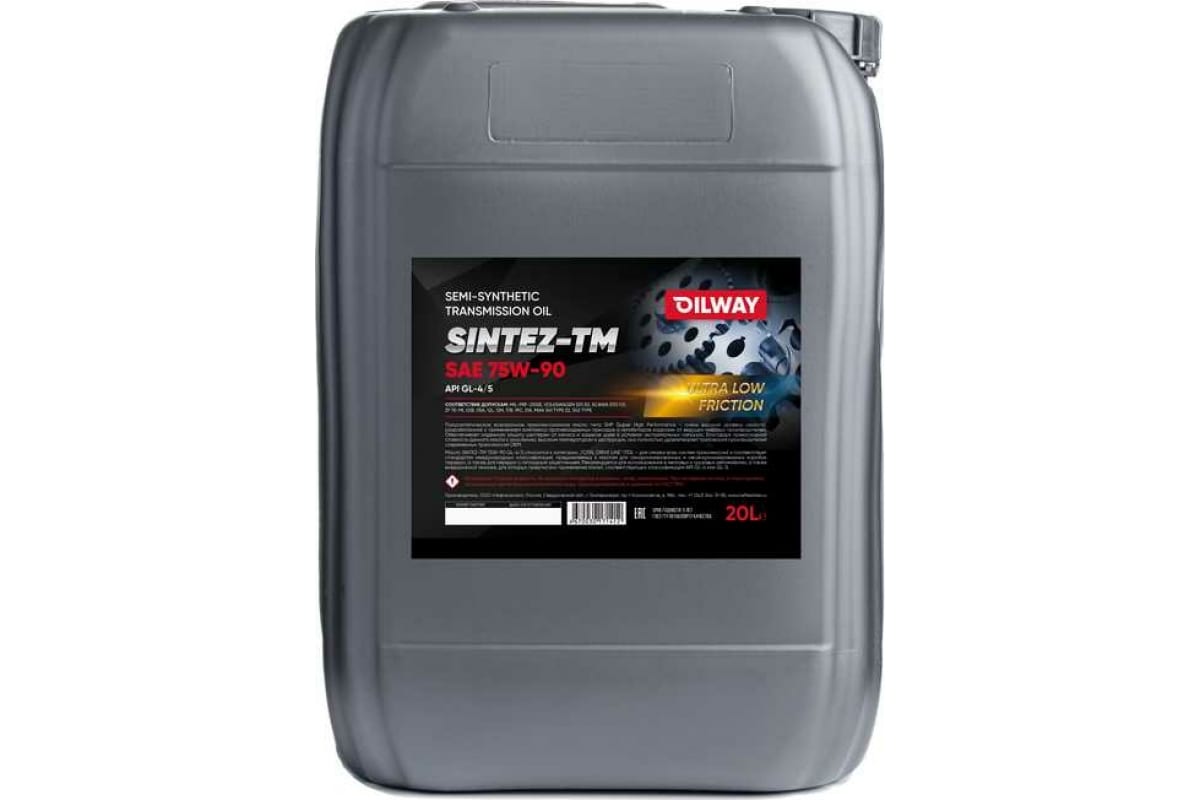 Трансмиссионное масло OILWAY Sintez-TM 75w90, GL4/5, полусинтетическое, 20 л 4670030171412 - высококачественное трансмиссионное масло, разработанное с использованием синтетических базовых масел с высоким индексом вязкости. Благодаря этому масло SintezTM 75W-90 GL-4/5 способно формировать очень прочную масляную пленку как при высоких, так и при низких температурах, что обеспечивает существенное преимущественно перед обычными трансмиссионными маслами.