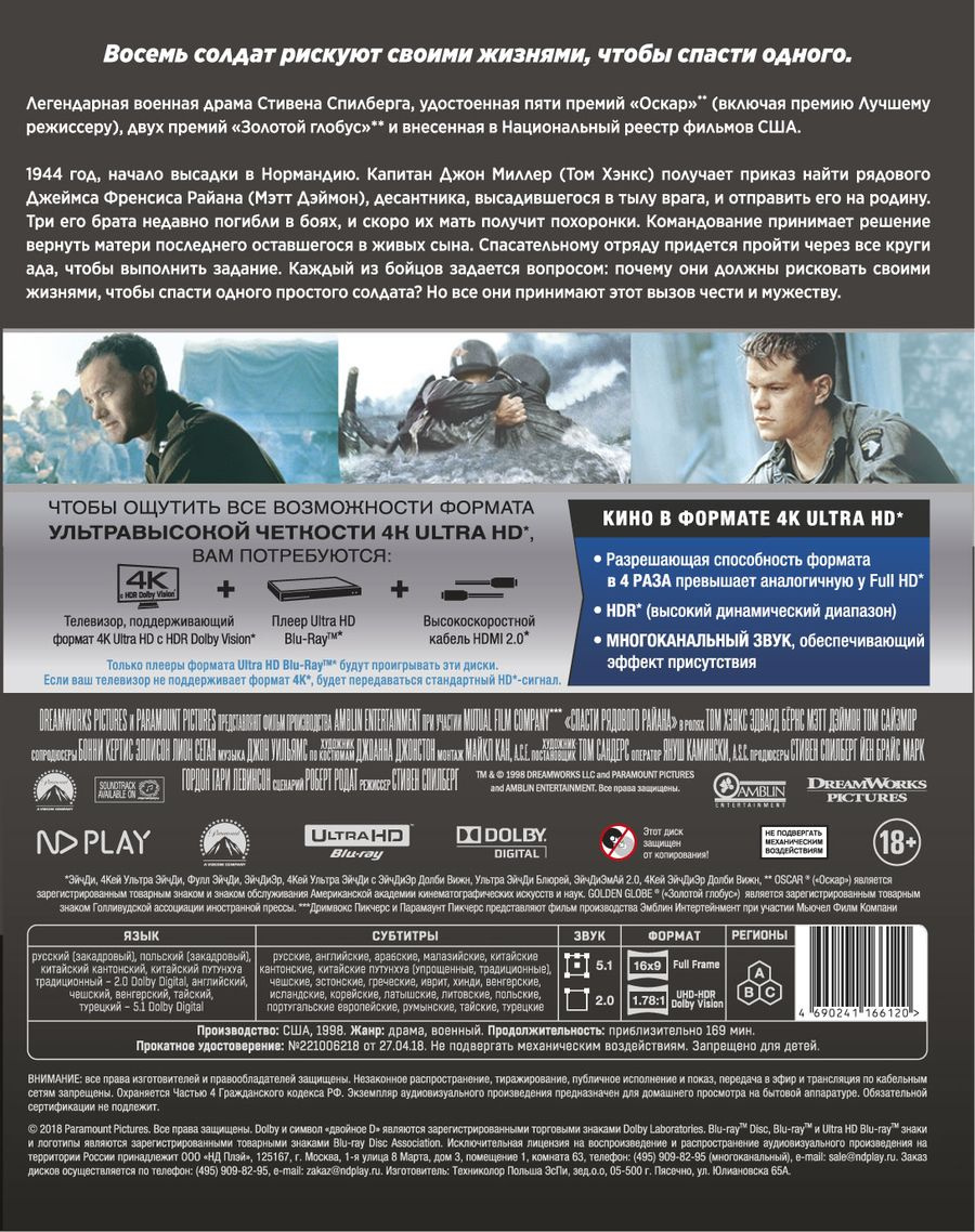 Спасти рядового Райана (4K UHD Blu-ray)