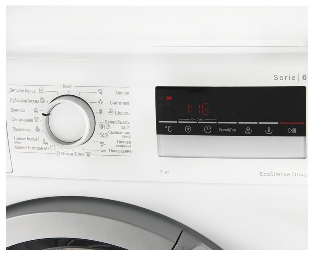 • Таймер отсрочки начала стирки есть (до 24 ч)
